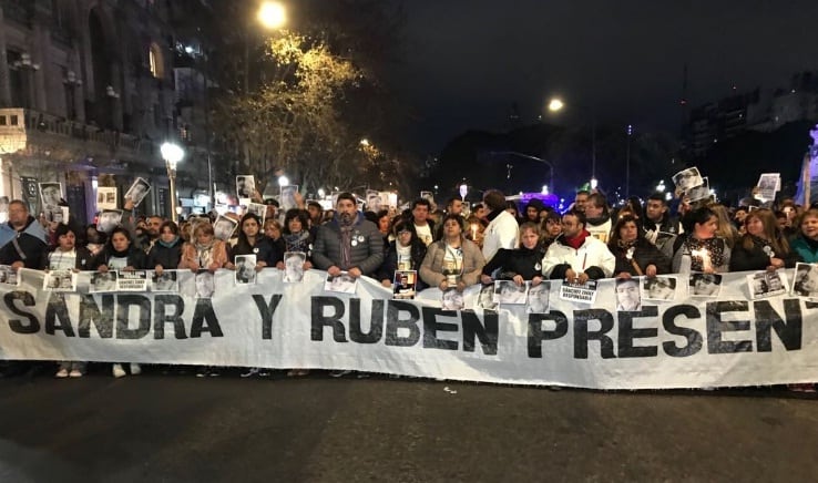 El Frente de Unidad Docente Bonaerense realizó una marcha de silencio desde el Congreso hasta la Casa de la Provincia de Buenos Aires para volver a reclamar por las muertes de la docente Sandr