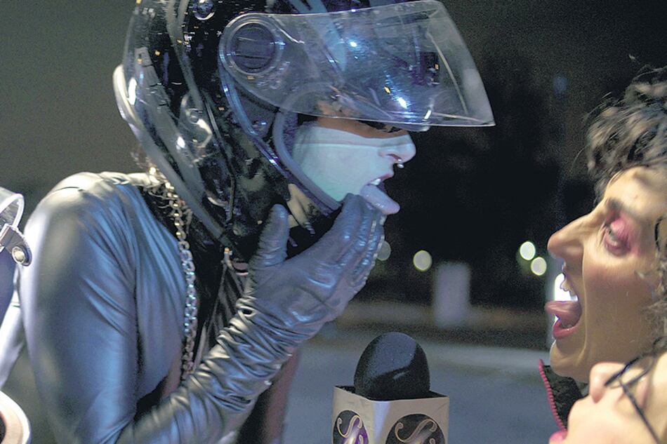 Lo que sucede sobre el escenario es una combinación de lenguajes, con algo de pop y algo de alucinación. Marianela Portillo del Rayo es la protagonista, la autora y directora de la puesta, que se llama Sr. Woman en Lady Ray Van Ring. Sr. Woman, además, es su alter ego: la líder de una banda de mujeres que toca en vivo frente a una pantalla de cine –en la que se proyecta una película que las tiene como personajes– mientras se suceden aventuras y géneros. Mejor que clasificar es dejarse llevar: además, esta pieza es la primera de una saga de tres partes que también podría seguir indefinidamente.