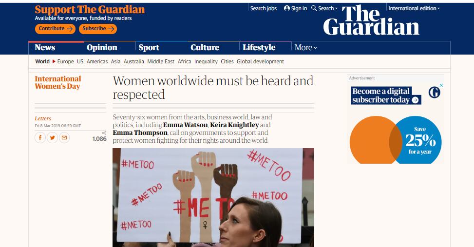 Una carta abierta por la igualdad en The Guardian