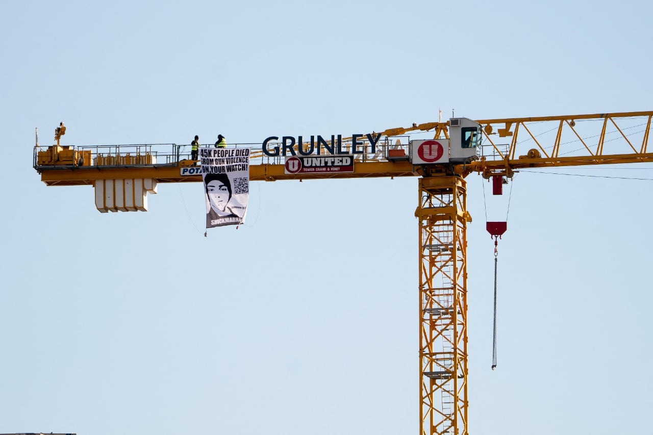 Manuel Oliver, padre de una de los jóvenes asesinados en 2018, se subió a una grúa cerca de la Casa Blanca con un mensaje dirigido al presidente estadounidense. El demócrata prometió luchar contra la "epidemia de violencia armada"