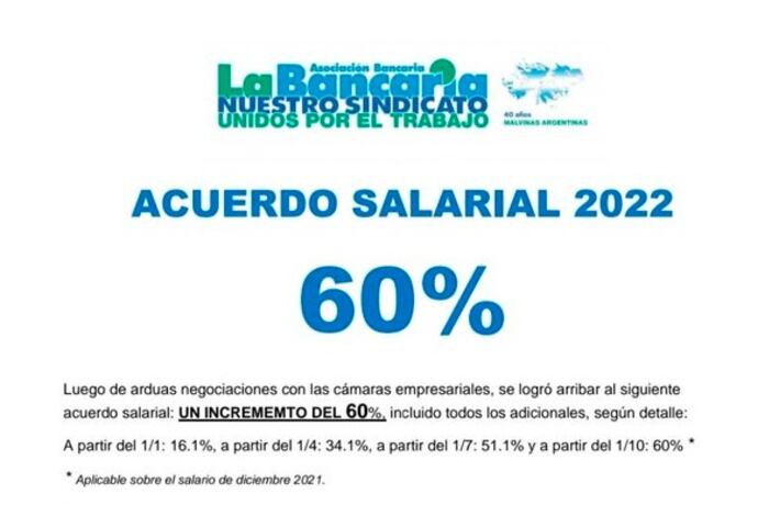 Los trabajadores bancarios lograron un acuerdo salarial del 60 por ciento, que fue difundido en la tarde del miércoles por el titular del gremio, el también diputado Sergio Palazzo.