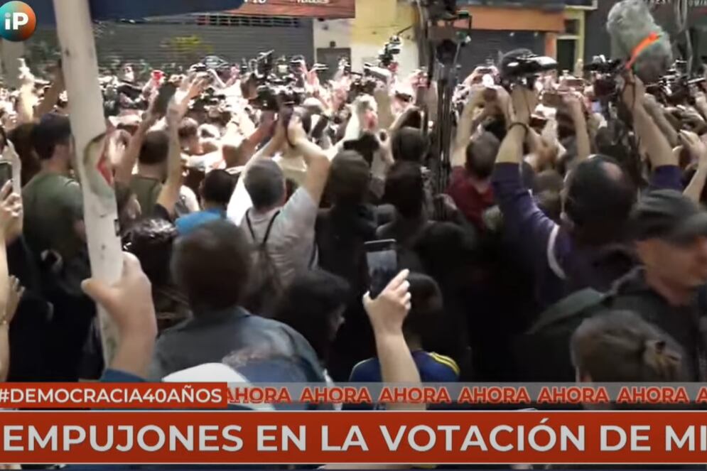 Ni bien terminó de emitir su voto, se generó una multitud desordenada alrededor del candidato, la intervención de la Policía de la Ciudad llegó tarde y tuvo modos violetos contra los periodistas presentes en el lugar.