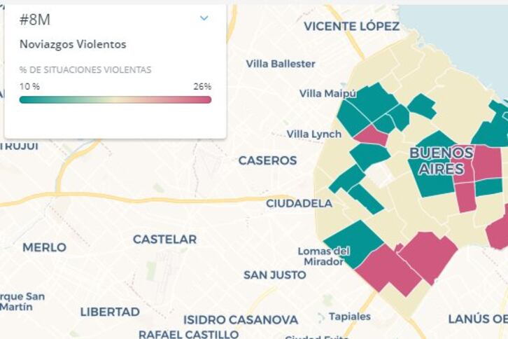 Agronomía, La Boca, Barracas, Soldati, Balvanera, Almagro, Lugano y Boedo son los barrios en los que se observaron mayores situaciones calificadas como de "noviazgos violentos", según un mapa de Properati elaborado con datos del Gobierno de la Ciudad.