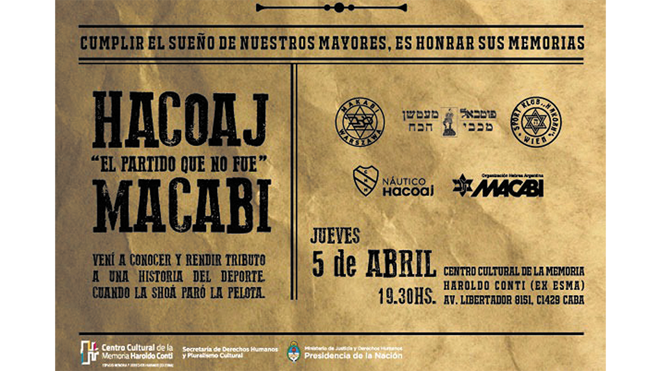 El Club Náutico Hacoaj y la Organización Hebrea Argentina Macabi presentarán el jueves próximo, a las 19.30, El Partido que no fue, en alusión al que no se pudo jugar por genocidio nazi.