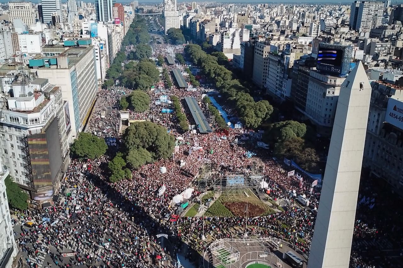 Una multitud rechazó las políticas de ajuste y los condicionamientos del Fondo Monetario Internacional. “Sabemos de qué se trata, el colonialismo neoliberal sólo ofrece miseria”, se planteó en el documento que se leyó antes de que las miles de personas presentes cantaran el Himno Nacional como cierre de la movilización.