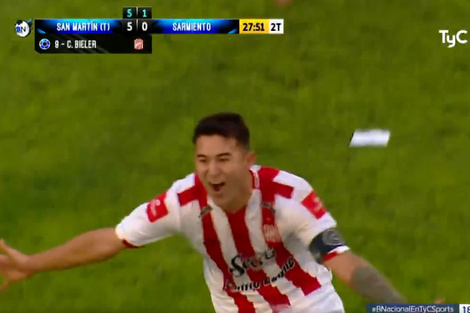 El conjunto tucumano, acompañado por una multitud en su estadio, tardó 2:46 minutos ponerse al frente en la serie, gracias a los goles del defensor Lucas Acevedo y el mediocampista Gonzalo Rodríguez. En el complemento, el "Ciruja" volvió a golpear de entrada por intermedio del eterno Claudio Bieler, que también anotó el quinto tanto, luego que Acevedo pusiera el 4-0 parcial.