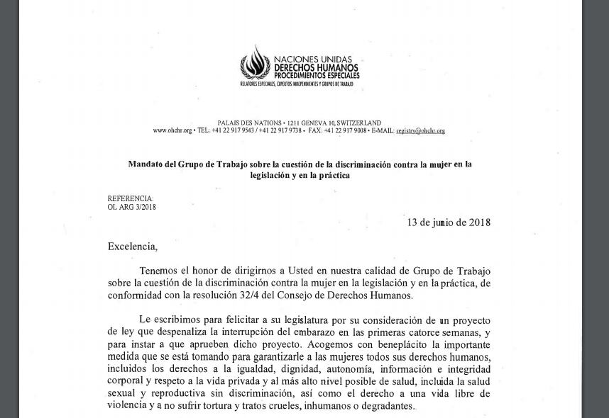 A minutos de que empiece la histórica sesión en la Cámara de Diputados en la que por primera vez se tratará un proyecto que legaliza el derecho a la Interrupción Voluntaria del Embarazo, la ONU env