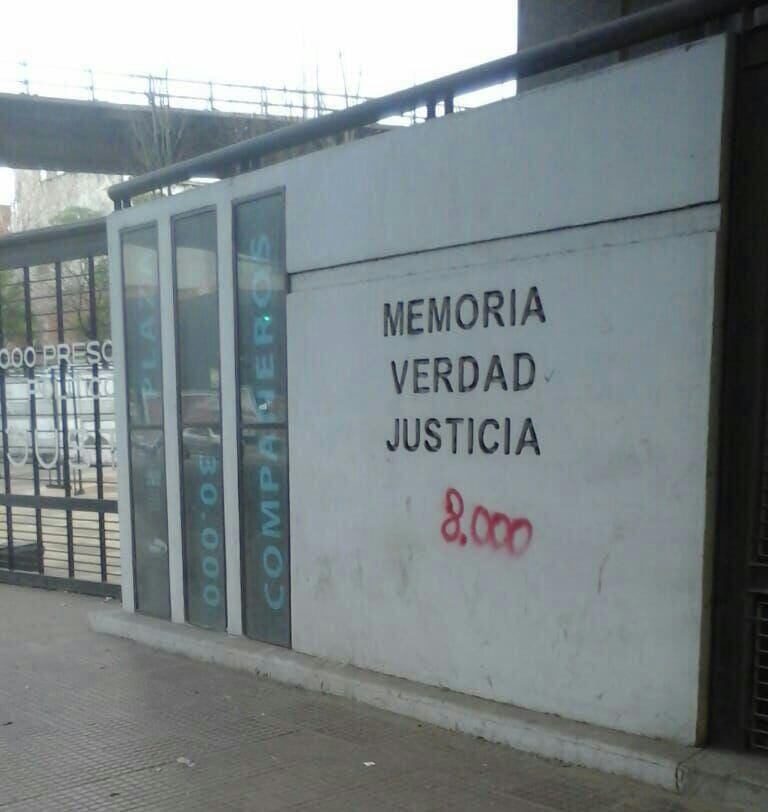 Tal como muestra la imagen que ilustra la nota, debajo de las palabras Memoria, Verdad y Justicia, talladas en uno de los paredones del ex centro Clandestino de Detención, Tortura y Exter