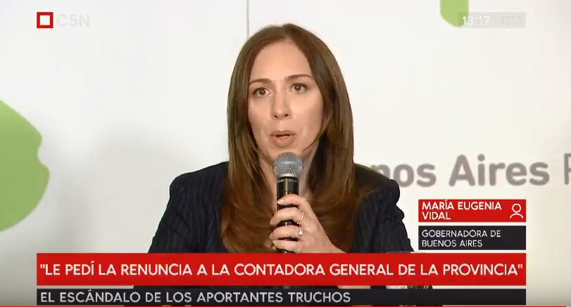 Luego de que Página/12 revelara que la recaudadora de Cambiemos en la campaña de 2017 fue designada como contadora general de la provincia de Buenos Aires, la gobernadora debió pedirle la renuncia a la funcionaria. Vidal habló la semana pasada de “una denuncia del kirchnerismo“, pero ahora aseguró: "Voy a dar la cara".