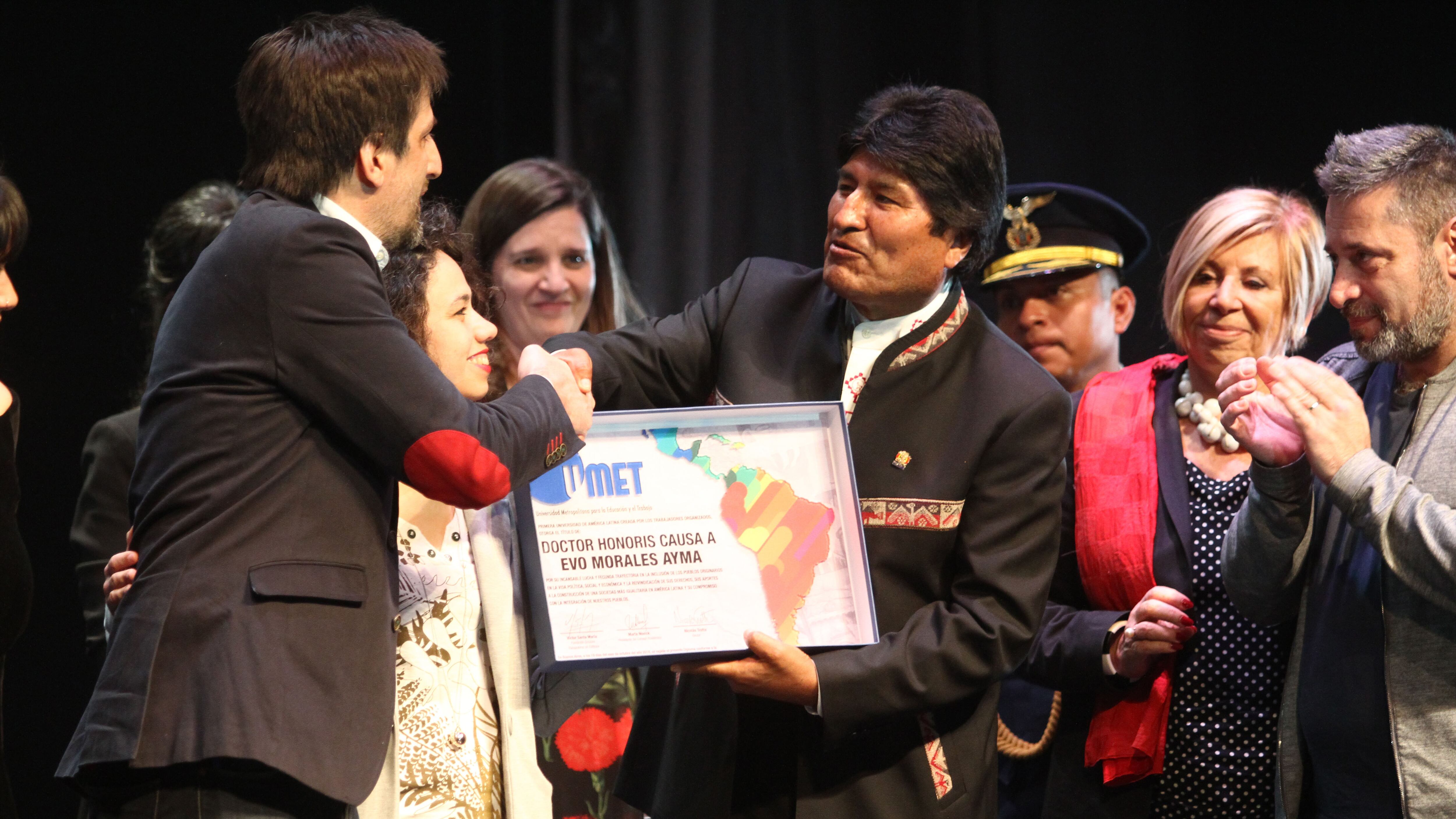 El presidente de Bolivia, Evo Morales, fue distinguido con el Doctorado Honoris Causa en la Universidad Metropolitana para la Educación y el Trabajo (UMET).