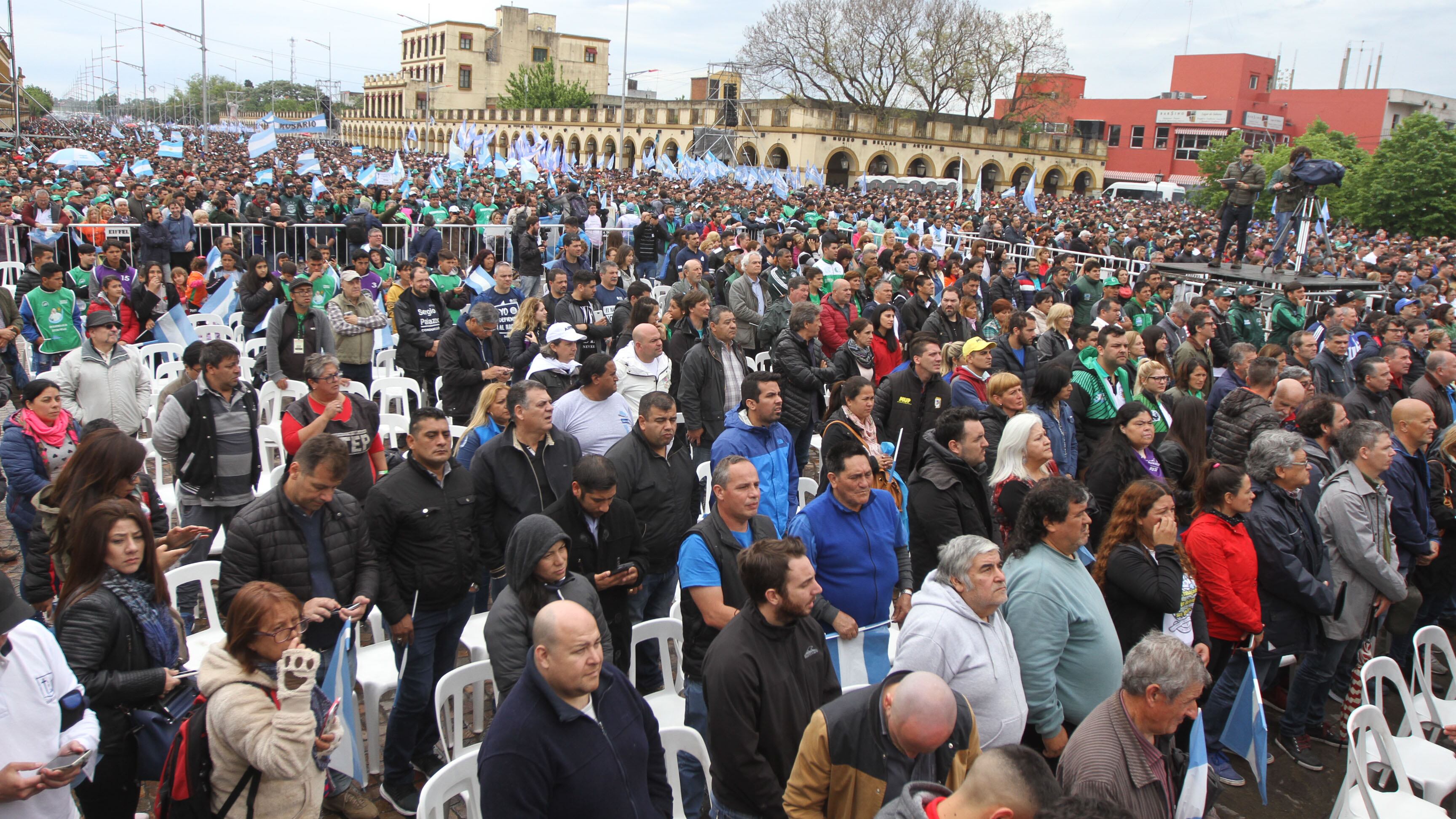 Convocadas por el Frente Sindical para el Modelo Nacional y más de setenta organizaciones gremiales, políticas y sociales, miles de personas se concentraron frente a la Basílica y participaron de una ceremonia ecuménica. La movilización expresó el rechazo a la política de ajuste del gobierno de Mauricio Macri.