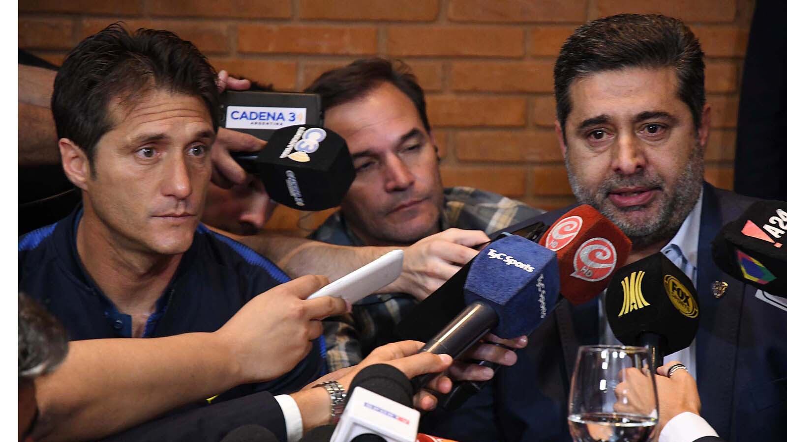 En una conferencia de prensa sobre la final suspendida, el Presidente y el DT de Boca reafirmaron su postura con respecto a la reprogramación del partido."Debo decir que no es lo que se vive previa