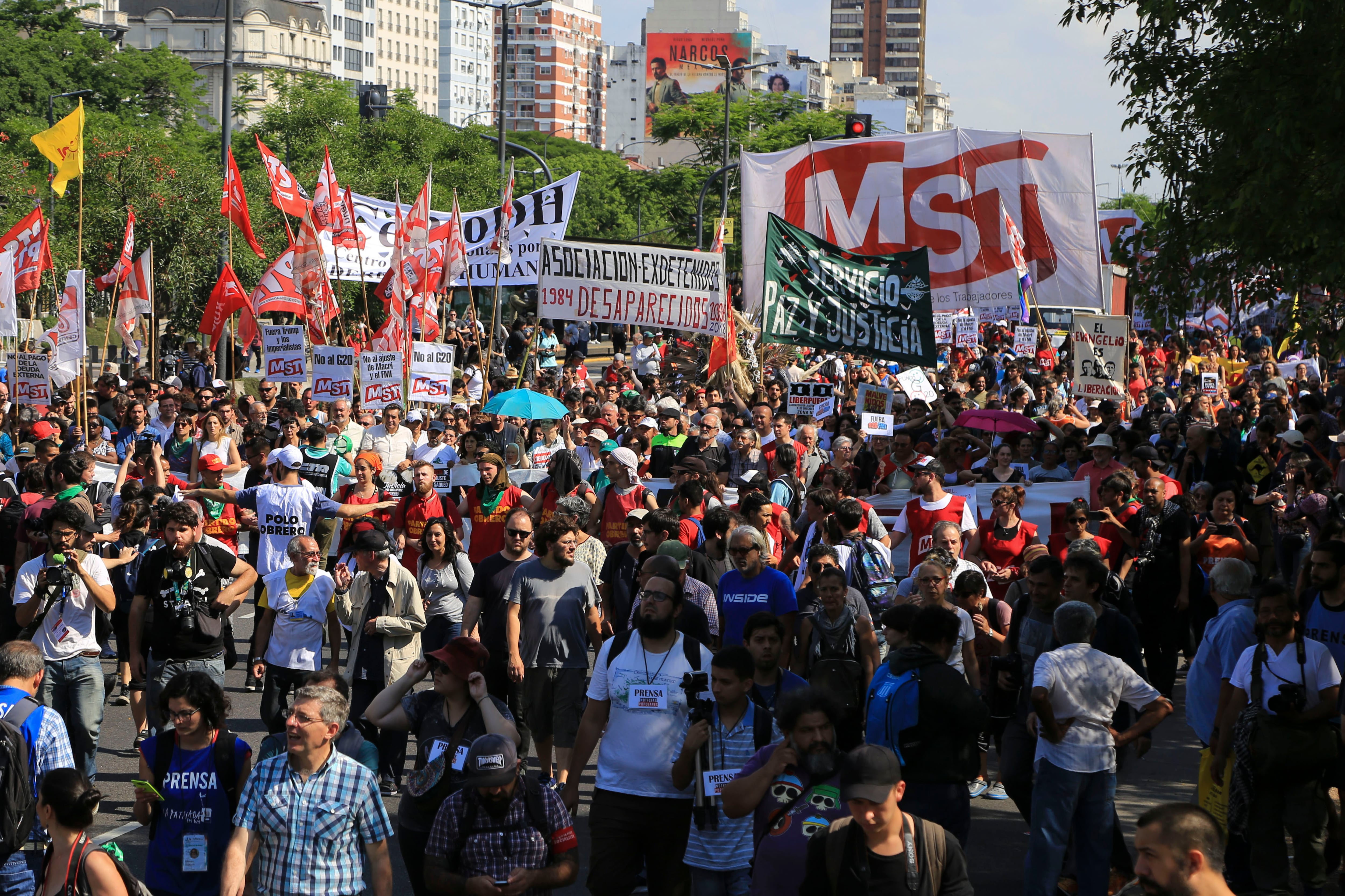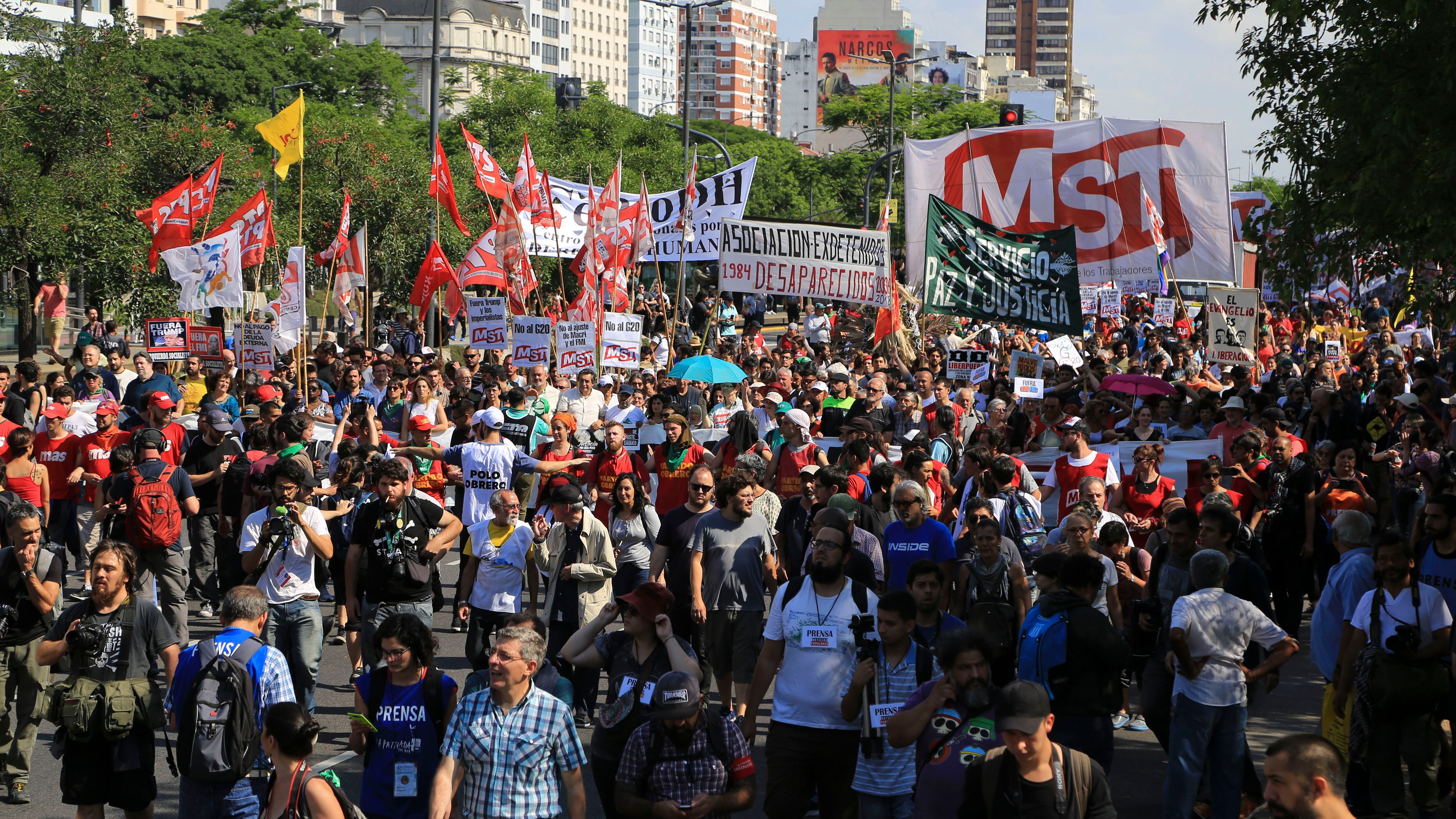La marcha se realizó en simultáneo con las deliberaciones de los principales líderes mundiales en Costa Salguero. Hubo un fuerte operativo de seguridad y la policía detuvo a varios manifestantes. También se expresó al acuerdo de la Argentina con el FMI.