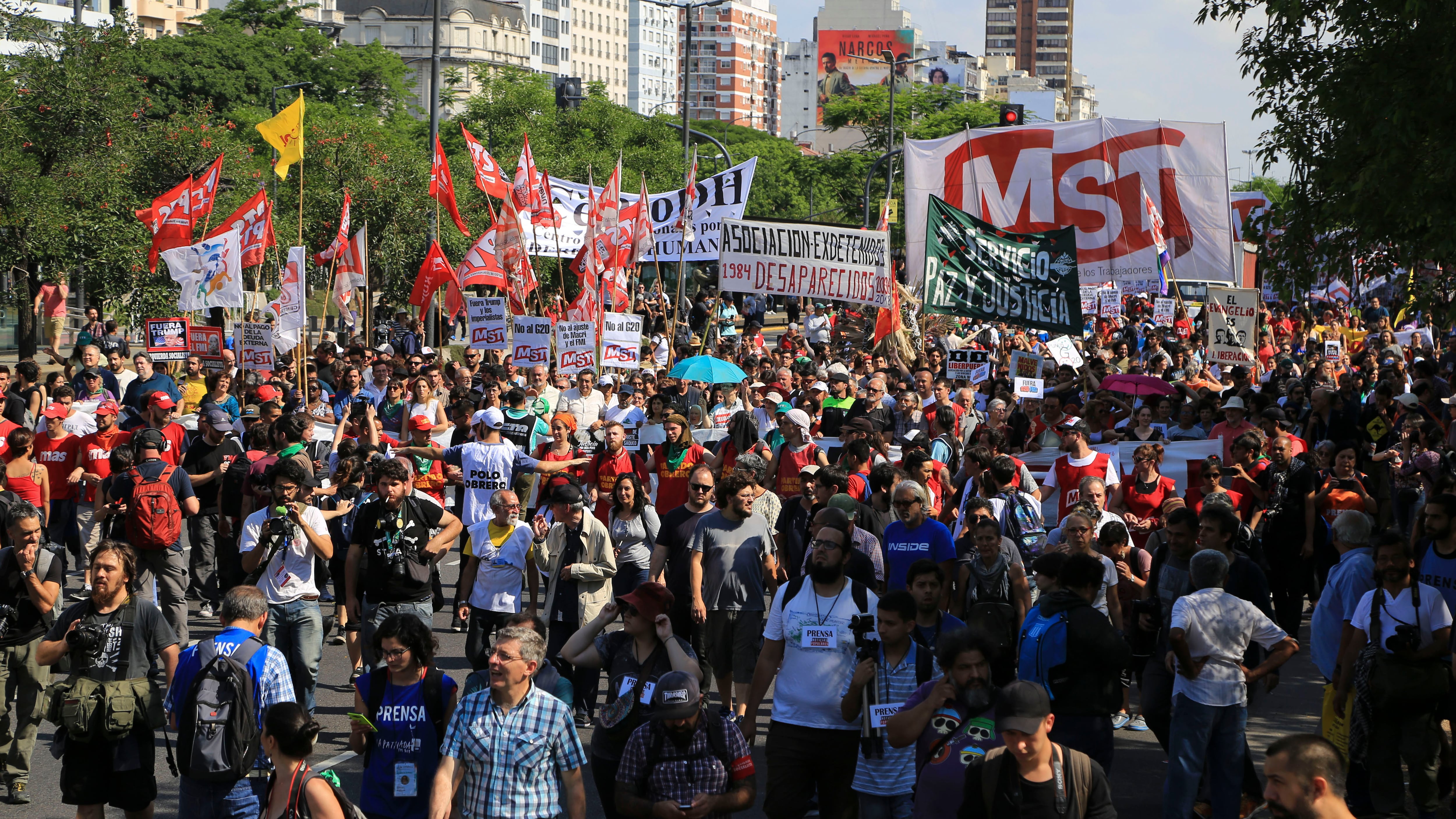 La marcha se realizó en simultáneo con las deliberaciones de los principales líderes mundiales en Costa Salguero. Hubo un fuerte operativo de seguridad y la policía detuvo a varios manifestantes. También se expresó al acuerdo de la Argentina con el FMI.