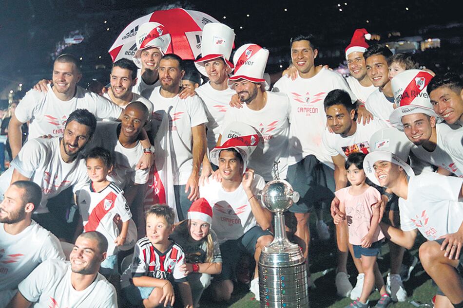 La celebración comenzó en Ezeiza y finalizó en el Estadio Monumental, que estuvo colmado por los que no pudieron disfrutar la final ante Boca. Gonzalo Martínez y Marcelo Gallardo fueron los más ovacionados de la noche.