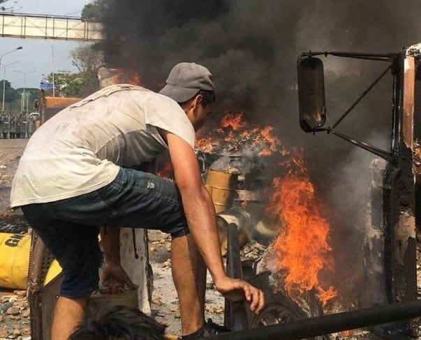 La derecha de Venezuela incendió camiones con ayuda humanitaria en otro intento de provocar la invasión