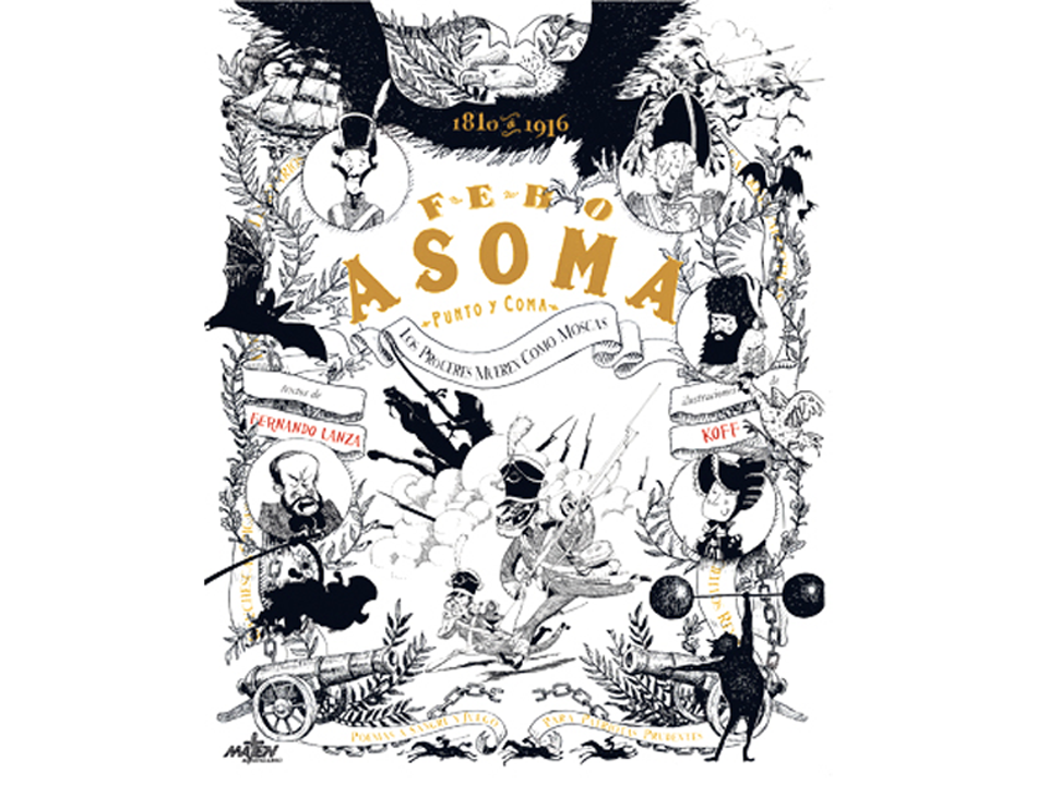 Se trata de un curioso libro ilustrado, que en oportunos versos recorre las no-tan-hazañas de un puñado de próceres inventados, pero demasiado parecidos a los reales. Editado por Maten Al Mensajero, una hacendosa editorial independiente de La Plata, Febo asoma es fruto de la suma de la pluma zumbona de Fernando Lanza con los encantadores dibujos de Koff. El resultado es un volumen atractivo e inclasificable, que responde cabalmente a la frase que oficia como presentacion de la obra: “Poemas a sangre y juego para patriotas prudentes”.