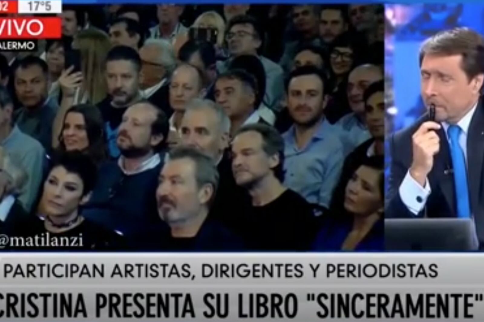 El periodista Eduardo Feinmann quedó descolocado ayer al aire durante su enumeración crítica de los que asistieron a la presentación del libro “Sinceramente” de la ex presidenta Cristina Kirchner.
