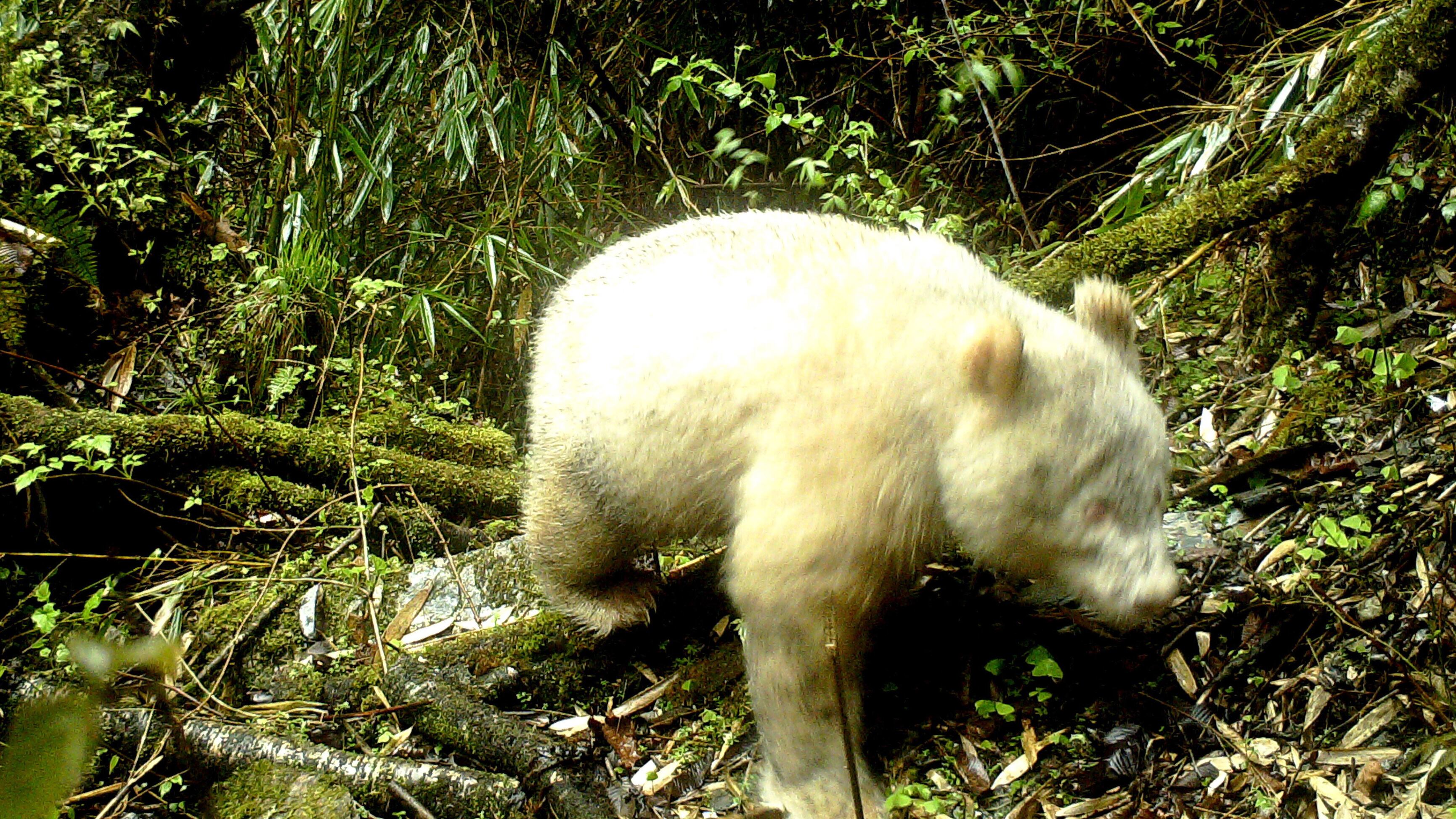 Por primera vez en la historia lograron fotografiar a un oso panda albino en libertad en una reserva natural en la provincia china de Sichuan.