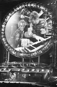 ¿Cuáles fueron, entonces, las cuestiones que empañaron un poco la tercera visita del psycho killer a Buenos Aires? En primer lugar, el sonido. Que, más allá del volumen --sorprendentemente amarrete--, fue errático a lo largo de la noche, prestando un protagonismo alternado a un instrumento u otro, y sin llegar a formar un todo coherente que despeinara a la platea. Definitivamente, este show no llega a las alturas de magia que alcanzó hace tres años la puesta en escena de David Byrne. El planteamiento es distinto: aquél era un CD introspectivo, que llamaba a una intensa comunión entre artista y público. Feelings, su última producción, no se aleja demasiado del rumbo trazado por su predecesor, pero a la hora de montarlo en escena Byrne eligió una actitud diferente, bailable, descomprimida. Por lo demás, Byrne fue Byrne, y no es poco decir. Perfecto dominador de la escena, capaz de sugerir el clima con un solo gesto, se apoyó en una banda de extraña formación, en la que Mochiach combinó la batería programada con la real --lo que produjo los mayores desajustes de sonido--, Kaphan aportó infinidad de matices con un lap steel sintetizado, Foster puso toda su negritud al servicio de la base y lució especialmente la voz de Wheeler. Quien incluso protagonizó el momento más deforme de la noche, disparando voces a través de un Vocoder --el aparatito preferido de Laurie Anderson-- sobre bases a la Chemical Brothers. En el centro, David exhibió un vestuario desconcertante (cuyo momento cumbre fue la combinación de camiseta y borceguíes militares, pollera escocesa rosa... y maracas), una voz entera y su encanto de performer, calzándose de vez en cuando una guitarra también sintetizada que, por momentos, recreó puntualmente al Talking Heads de Remain in light. Que el show no haya alcanzado los picos a los que Byrne puede llegar no significa que haya estado desprovisto de alma. La noche tuvo momentos intensos --y hasta sobrecogedores, como "Dance on vaseline"--, como la hermosa versión de "A soft seduction", el recuerdo de "Take me to the river" o el final de "Road to nowhere". El premio mayor, de cualquier manera, se lo llevó (como en las dos oportunidades anteriores), "Psycho killer", que esta vez encontró un formato acorde con el fin de siglo y presentó a Byrne ataviado con un traje de músculos y huesos que acentuó el efecto inquietante de su canción paradigmática. Después fue cuestión de brindar otro homenaje a TH con "I Zimbra" y despedirse, en bata de irse a dormir, con el bellísimo "Amnesia". Allá arriba en el teatro, hacía rato que se habían cansado de pedir por el volumen.