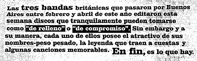 En realidad, cuando se habla de los dinosaurios aparecidos de la nada en esta primera semana del frío noviembre londinense, quien en realidad ganó todos los titulares es un tal Lennon. La caja de cuatro discos de su Anthology personal es el comentario de las revistas musicales serias como Mojo o de diarios como The Guardian. Puede ser que todos escuchen a Oasis o a U2, pero todos escriben de Lennon (y los Beatles, of course). Y no todos lo hacen bien. Cuando no eran fabulosos, titula David Bennun una imperdible nota en The Guardian, en el que asegura que -como fueron tan buenos como Beatles- a John, George, Paul y Ringo se les perdonaron sus autoindulgencias como solistas. Pero ya es suficiente. La caja de Lennon aparece como el último volumen del Anthology, escribe Bennun. De la misma manera en que ninguna otra banda puede soportar semejanteexhaustividad compilatoria, ningún otro beatle reúne suficientes méritos para semejante escrutinio personal. No tendríamos paciencia. Cuando uno considera las cosas que ha tenido el valor de publicar McCartney durante todos estos años, no puede menos que temblar cuando piensa en las cosas que dejó de lado. De Lennon a Noel, entonces, es el recorrido de la nostalgia inglesa de hoy y de ayer. Give pop a chance.