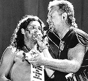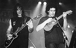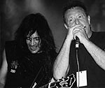 2 No tan extraña pareja. Flavio Cianciarullo, el que se quería morir tocando ska en los ochenta, junto al último mohicano del metal argentino: Ricardo Iorio. Una postal del show de Almafuerte en el Parque Sarmiento.