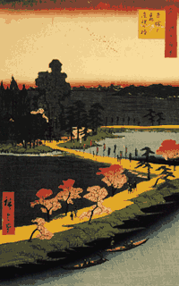 Su nombre de cuna era Ando Tokutaro y nació en la ciudad de Edo (Tokio) en 1797. Un relato legendario sobre su infancia cuenta que el futuro Hiroshige iba a entregarle sus ideas al mar, porque se pasaba horas eligiendo ramas de diferentes grosores para hacer intrincados trazos sobre la arena húmeda. Pero faltan datos biográficos sobre sus primeros 33 años de vida y hasta 1830, aproximadamente, no hay registros fidedignos porque en la sociedad japonesa de entonces los grabadores eran artesanos y plebeyos, dos condiciones suficientes para no ingresar en los archivos del viejo imperio. Lo cierto es que Hiroshige fue .-junto con Hokusai y Utamaro- uno de los grandes maestros de la xilografía color en la técnica ukiyo-e. Su genio para la composición de paisajes y evocación de atmósferas fue reconocida en Occidente por los impresionistas y posimpresionistas, que se transformaron en sus principales coleccionistas y difusores.