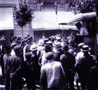 los obreros municipales de El primer gobierno de Hipólito Yrigoyen (1916-22), impotente y contradictorio para alinearse junto al pueblo, mandó a reprimir. Pero la oligarquía, las grandes empresas y los paquidermos periodísticos desconfiaban de Yrigoyen --que había alcanzado el poder con gran apoyo popular-- y lo acusaron de favorecer a los huelguistas indiscriminadamente. Así nació la decisión de los "altos intereses en peligro" de crear una fuerza parapolicial que reprima por su cuenta "y con mayor eficiencia que los regulares". Los grandes diarios y los círculos conservadores habían entrado en una suerte de pánico, casi de histeria, denunciando la existencia de soviets, aun dentro de la policía. Y, al estallar una huelga general en los frigoríficos de Berisso y Avellaneda, casi todos de propiedad norteamericana, salieron los primeros grupos de "niños bien", montados en automóviles último modelo, a reprimir a los "subversivos" y a reclutar rápidamente "crumiros" (vocablo que entonces denominaba a los trabajadores rompehuelgas). Los "triunfos" alcanzados por esos jóvenes --fuertemente impregnados por una combinación de difuso nacionalismo y catolicismo-- alentó la formación de dos organismos civiles terroristas: "Orden Social" y "Guardia Blanca", transformados posteriormente en "Liga Patriótica Argentina" y "Comité Pro Argentinidad" que crearon brigadas armadas con el visto bueno de la policía y el Ejército y el apoyo financiero de la "Asociación Nacional del Trabajo", entidad patronal presidida por Joaquín S. Anchorena. La "Liga Patriótica" --la más importante y conocida de esas organizaciones-- se "cubrió de gloria", según La Prensa, en numerosos ataques a centros y reuniones obreras. Una de esas "proezas" fue el asalto a un local de la FORA (Federación Obrera Regional Argentina), cerca de Plaza Once, donde resultaron dos muertos, uno de ellos el chofer Bruno Canovi. También atacó una pacífica demostración en Gualeguaychú (Entre Ríos), con diversos muertos y heridos como saldo. Por otra parte asesinó en Rosario a la obrera anarquista Luisa Lallana, y en el puerto de Buenos Aires fue muerto de manera similar el trabajador Angeles Améndola. Sin embargo aquella ordalía represiva recién alcanzaría su máxima altitud durante la "Semana Trágica" --6 al 13 de enero de 1919-- que dejara como saldo unos 700 muertos y más de 4000 heridos.