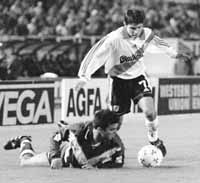campo. El dribling a la carrera del rubiecito Paulo Nunes (campeón Libertadores con