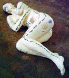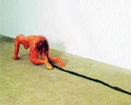 de papier-maché, que representa a una mujer desnuda arrastrándose