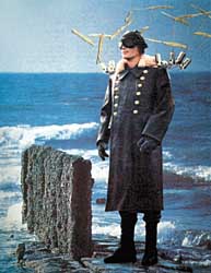 personaje de Panamarenko, que parece buscar el futuro perdido, con sus