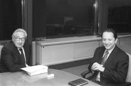 “No vengo a hablar de la sustancia del tema (Yacyretá). Sólo a informarme de los procedimientos (del arbitraje)”, aseguró ayer Henry Kissinger, en alusión a la agenda que hoy desmenuzará con Fernando de la Rúa. Rodolfo Terragno y José Luis Machinea son otros de los funcionarios argentinos claves que el célebre norteamericano prevé visitar entre hoy y el jueves. Es cierto que había cultivado buenos vínculos con el ex presidente Carlos Menem, quien en 1998 lo recibió en la riojana Anillaco para precisar los términos del demorado arbitraje. Pero también es cierto que tejió lazos con Raúl Alfonsín, como ahora pretende hacerlo con De la Rúa. Sus nexos con mandatarios latinoamericanos le son muy útiles a la hora de ofrecer los servicios para las grandes empresas que asesora o representa, según los casos. El ex miembro del Foreign Intelligence Board y Premio Nobel de la Paz en 1973 tiene un conocido estudio de asesorías a empresas (Kissinger-McLarthy), con sedes de Nueva York y Washington. Desde 1996 también es miembro del directorio de American Internacional Group y del Global Trade & Pol Risk; directivo de Museo de Arte Metropolitano de Nueva York y asesor del Chase Manhatan Bank. |