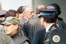 El 9 de junio de 1998 Videla fue detenido por el juez federal de San Isidro, Roberto Marquevich, y pasó mes y ocho días preso en la cárcel de Caseros, hasta que la Cámara Federal de San Martín le otorgó el arresto domiciliario. Estaba acusado de ser el autor mediato de la apropiación de cinco menores, hijos de desaparecidos, que habían sido entregados a militares o personal de las fuerzas de seguridad y fueron inscriptos falsamente como propios. El mismo día de la detención del militar, Hebe de Bonafini se presentó en el despacho del juez y lo acusó de haber tomado la decisión “por la necesidad de Carlos Menem de aliviar la presión internacional”. Pero la Cámara Federal de San Martín decidió que el expediente pasara a manos del juez Bagnasco, que investiga la práctica sistemática de apropiación de los hijos de los desaparecidos durante la dictadura. Las dos causas no pueden ser anexadas porque la que inició Marquevich se rige por el antiguo Código de Procedimiento penal, pero tramitan en forma paralela. Ese código establece que el llamado a indagatoria implica el procesamiento, es decir que Videla ya está procesado. Pero Bagnasco lo indagó el mes pasado para interrogarlo por todos los casos que componen la práctica sistemática, a excepción de los que corresponden a la Escuela de Mecánica de la Armada. El juez está dedicado a la etapa del proceso que comprende los nacimientos clandestinos ocurridos en jurisdicción del Ejército. Videla es el eslabón superior de la cadena de mandos, que se completa con Carlos “Pajarito” Suárez Mason, Santiago Riveros, Juan Sasiaiñ y Jorge Olivera Rovere. |