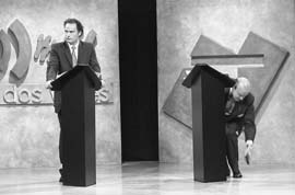 Como en todo debate, detrás de cámaras se produjo el debate sobre el debate y allí los protagonistas fueron los asesores. “Ganó Cavallo”, repetían unos. “Ganó Aníbal”, repetían otros en los cortes, mientras un batallón de colaboradores daba letra a los candidatos. Algunos amenizaron la espera hablando por teléfono. Fue el caso de Cecilia Felgueras, quien en una tanda tranquilizó al presidente Fernando de la Rúa sobre el buen papel de Ibarra ante las cámaras. Otros mataron el tiempo con humor, como el secretario de Educación porteño, Mario Giannoni, que al ver que la secretaria de Cultura, Teresa de Anchorena, no tenía dónde sentarse le gritó, mientras señalaba el sector cavallista de la platea: “Vení que (Eduardo) Delle Ville te hace upa, pero no vayas a irte para allá”. Lo que nadie logró descifrar fue el origen de algunas interferencias al audio de Irma Roy, Raúl Granillo Ocampo y Antonio Cartañá. La producción de “A dos voces” se cansó de avisar que eran de un Movilink, justo los aparatos que usan los equipos de campaña de Ibarra y Cavallo. |