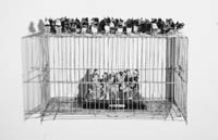 Los pajaritos, avecitas del Señor ready china made; los diablos de barro y “de bulto”, que se compran en serie en santerías de cuarta, los juguetitos perversos para casas de muñecas, han sido desplegados en los campos de batalla para destruir a la divinidad. Esos objetos hallados –que son hallazgos–, son arrebatados por algo que los sustrae de su sentido común para significar de otro modo, para crecer en significación; eran ajenos, estaban destinados a otros juegos de la mente, y de pronto enloquecen, se enajenan de lo que eran para ser concepto, idea, violencia de la razón y alteración del deseo.