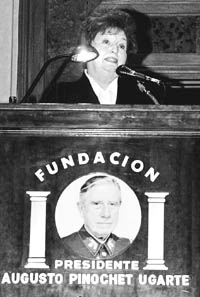 Las cerca de 2 mil personas que asistieron la noche del jueves a la entrega de 400 becas de la Fundación Pinochet a estudiantes hijos de uniformados, entre militares activos, en retiro, representantes de las otros cuerpos de las Fuerzas Armadas y pinochetistas, vieron a Izurieta entrar en el salón junto a Lucía Hiriart, esposa del ex dictador. Al terminar, el jefe del ejército dijo que el apoyo de su institución a Pinochet “no se acabó en Londres sino que es permanente”. Hubo en el acto un ambiente de constantes muestras de solidaridad entre los militares retirados y en actividad. Los asistentes gritaron una y otra vez, en apoyo a Pinochet: “Se siente, se siente, el ‘Tata’ está presente”. Lucía Hiriart, en un discurso improvisado, el primero desde que Pinochet regresó a Chile desde Londres el 3 de marzo, afirmó que en la vida de los grandes hombres “siempre hay injusticias”, criticó que el Estado “resultó para nosotros injusto e innoble” y pidió a Dios y a la Virgen que dejen a su marido morir en paz, porque si la justicia de los hombres falla, “la divina despertará”.