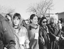 “Nosotras no tenemos motivos para pensar que Natalia Fraticelli era maltratada por su familia. Lo que nosotros hemos visto, siempre, es una madre que la acompañaba y la cuidaba y un padre que también le daba su respaldo. No tenemos ninguna otra visión”, explicó a Página/12 Rosa Díaz, quien viene asumiendo el liderazgo del grupo de compañeras de Natalia. Los manifestantes se reunieron, a partir de las 10, frente a la iglesia. Partieron cien personas, pero al llegar ya eran más de doscientas y otras se instalaron en las veredas, expresando su solidaridad.