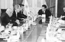 La permanencia del ministro de Economía, José Luis Machinea, fue otro punto de coincidencia y preocupación del grupo. Consideran que la caída del ministro significaría una derrota “difícil de remontar”. Paralelamente evaluaron como una victoria la no participación del jefe de la SIDE, Fernando de Santibañes, en la comitiva que acompañó a De la Rúa a los Estados Unidos. La leyeron como una señal de que “se puede parar al establishment”.
