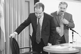 “Estoy un poco fastidiado con las empresas”, se quejó anoche Machinea, para quien las concesionarias “no quieren bajarse de nada”. La suerte de esta negociación, por ahora empantanada, podría definirse en las próximas 48 horas, lapso en el cual el titular del Palacio de Hacienda promete cerrar trato. Si esto no fuera posible, Machinea sabe que las empresas siempre tienen el resguardo de las leyes vigentes, que les permiten indexar sus tarifas según los precios norteamericanos.
