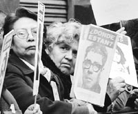 La presentación de los abogados querellantes fue terminante. Pinochet es responsable de las ejecuciones de la Caravana de la Muerte, tanto por tener conocimiento de ellos, como por haber delegado funciones al jefe del escuadrón, el general retirado Sergio Arellano Stark, actualmente detenido por esa misma causa. “Uno de los objetivos del desafuero es, sin duda, privar del privilegio que goza en estos momentos el senador vitalicio Augusto Pinochet y reflexionar si acaso es lógico que una persona que está incapacitada (supuestamente) puede ser senador de la República y en esa calidad dictar leyes”, argumentó el abogado Hiram Villagra, uno de los siete acusadores. Su par, Boris Paredes, aseguró que “la verdadera misión entregada por Pinochet a la caravana era la ejecución y exterminio de los opositores al gobierno militar”. El último alegato estuvo a cargo de la presidenta del Consejo de Defensa del Estado (fiscalía), Clara Zczcaranski, que en nombre de ese organismo, asesor del presidente Ricardo Lagos, respaldó el desafuero del ex dictador y actual senador vitalicio. Los siete abogados querellantes denunciaron que la defensa de Pinochet procedió mal jurídicamente al exigir los estudios médicos una vez comenzada la serie de audiencias, cuando lo que corresponde según la ley es que ese pedido figure antes del inicio. “En Hamlet, el príncipe fingió estar loco para encontrar la justicia y la verdad. En este caso el querellado trata de fingir estar demente para conseguir todo lo contrario”, agregó Boris Paredes al rematar su alegato. Los reclamos de los abogados querellantes generaron una llamada de atención a los defensores por parte del presidente de la Corte, Hernán Alvarez, quien ante la insistencia del equipo de Pinochet hizo sonar una campanilla y aclaró: “Señor abogado, usted no puede referirse a eso ahora”. El juez dio entonces por terminada la sesión y adelantó que “el tema de los exámenes médicos podría conversarse el próximo martes”. Alvarez señaló que la decisión final se tomará en poco tiempo (fuentes judiciales aseguran que será a fin de mes o principios de agosto), pero que el plazo dependerá de si alguno de los otros jueces pide estudiar en profundidad el expediente. Según la ley chilena, disponen de un máximo de 15 días para ese trámite, que se extiende a 30 cuando son dos o más los que lo solicitan. Afuera, frente a la entrada del edificio de la Corte, seguidores y opositores a Pinochet repitieron la escena de los días anteriores: concentraciones y gritos cruzados. Después de la audiencia, los pinochetistas eligieron marchar bajo la lluvia por las calles de Santiago en dirección al cuartel donde está detenido Alvaro Corbalán, ex agente de la CNI (heredera de la policía política pinochetista DINA), quien el miércoles fue condenado a cadena perpetua por un doble asesinato: el de un carpintero a quien habría asesinado para ocultar otro crimen, y el del sindicalista Tucapel Jiménez en 1982. Por su parte, unos 300 familiares de detenidos-desaparecidos recorrieron el centro santiaguino hasta el monumento del ex presidente socialista Salvador Allende, frente al palacio presidencial de La Moneda. “En esta jornada ha pasado de nuevo por nuestros corazones el dolor del pasado”, declaró Viviana Díaz, presidentade la Agrupación de Familiares Detenidos Desaparecidos (AFDD), después de depositar una corona de claveles blancos y rojos a los pies de Allende.