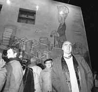 Mar del Plata tiene una plazoleta que se llama Jorge Luis Borges. Y desde este fin de semana, un mural de más de cien metros cuadrados que convierte a la plazoleta en una obra de arte. La inauguración del mural se constituyó en la apuesta más fuerte de los homenajes que se le rindieron aquí al escritor, al cumplirse el 101º aniversario de su natalicio. La plazoleta, ubicada en la céntrica esquina de San Martín y La Rioja, fue desbordada por centenares de personas que no quisieron perderse el momento. El mural es una reproducción gigantesca de un dibujo de Miguel Rep, crédito de Página/12, concretada en 3200 baldosas de cerámica de 20x20 centrímetros cada una. Los asistentes, entre ellos el intendente Elio Aprile, se retiraron de la ceremonia con la certeza de que el mural pasaba a integrar el paisaje urbano de los marplatenses y seguros de que se convertirá en una atracción más de la ciudad.