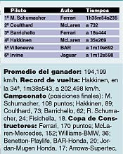 del regreso de Hakkinen al cuarto lugar, detrás de Barrichello.