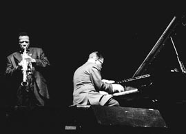 El esquema a partir del cual funcionó el recital (que duró 50 minutos exactos) fue el de pequeñas células modales sobre las cuales se tejían las improvisaciones, mucho más cerca de la exploración climática que de cualquier desarrollo de las células originales. En ese sentido, Shorter fue un poco más descontrolado, su estilo se pareció más al jazz (a pesar de haber pasado largos años de su vida en Weather Report) y tuvo momentos inspirados. Lo de Hancock, en cambio, fue de una mediocridad llamativa, sobre todo cuando se empeñó en querer imitar a Jarrett (Hancock tocó solo en varias oportunidades en que Shorter se retiraba hacia las bambalinas, y parece que un piano solo sobre un escenario significa una tentación irresistible). Tal vez el referente de Jarrett, en ese contexto, sea demasiado fuerte. O, tal vez, sencillamente, Hancock no estaba en su mejor día. Confuso, errático en sus ideas, fiel a ostinatos interminables, sin decidirse en cuestiones de estilo, Hancock fue una sombra (una sombra leve, debería añadirse) del gran creador cuyo último disco dedicado a Gershwin –y en el que cantan Joni Mitchell y Kathleen Battle– ganó todos los premios posibles.