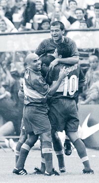 3 La manija de Riquelme. Juan Román Riquelme fue ayer la figura de su equipo. Metió un gol, pudo convertir un par más y dio no menos de cuatro pases de gol. Sus entradas en escena le dieron relieve al juego de su equipo y al partido. En su gol, el primero de Boca, el que dividió al partido en dos, calculó el disparo y puso la pelota exactamente en el blanco pretendido, la ratonera, el huequito más cercano al segundo palo. Los españoles no le van a destinar una marca especial y por lo tanto Riquelme, si está inspirado, puede ser la principal carta ganadora. 4 La resurrección de Córdoba. En el último partido de los boquenses por el campeonato local, el colombiano Córdoba se había deglutido por lo menos dos de los tres goles que había convertido Rosario Central. Ayer fue vital en la victoria de Boca. En el mejor momento de Talleres en el partido (entre los 10 y los 30 minutos del período inicial) tapó dos mano a mano a Rueda, que tenían un fuerte olor a gol, gracias a sus reflejos y al apuro del delantero. Puede ser un golpe duro en la autoestima de Boca si se piensa cómo definirían Raúl o Figo en circunstancias similares a las de Rueda. La gran actuación de Córdoba se redondeó con el saque de arco/pase gol del segundo de Boca. 5 El buen momento del Chelo Delgado. Agrandadísimo, Delgado la sigue rompiendo. La seguidilla de partidos como titular le dio confianza para meter la diagonal, desbordar y tirar el centro, jugar a un toque o pegarle al arco, sin encapricharse con el chanfle. Metió el segundo gol de Boca guapeando entre los dos centrales cordobeses y participó en el inicio y el pase a Riquelme del primer tanto. Oee, oeoeee, oee, Chelo, Chelo..., lo despidió la gente cuando fue reemplazado por Guillermo Barros Schelotto. 6 Los cabezazos de Bermúdez. El colombiano metió un cabezazo ofensivo que reventó el travesaño de Cuenca y ganó de arriba en su propia área. Todos saben el técnico del Real Madrid, Del Bosque, también de los problemas que se le presentan al equipo de Bianchi en los pelotazos cruzados. Si Bermúdez anda como ayer, no se le va a hacer fácil a Hierro, que cabecea fenómeno. 7 La capacidad de recuperación del equipo. Boca mostró ayer mucha fortaleza anímica en un partido que se le había puesto muy chivo en el primer tiempo. Cuando ajustó las tuercas, después del golazo de Riquelme todo se le hizo más fácil. 8 La capacidad goleadora. Si Boca dependiera exclusivamente de Palermo, ayer hubiera empatado con Talleres. El grandote jugó mal, definió como un principiante en un par de jugadas y mostró al desnudo toda su torpeza. Tan mal jugó que en un momento, después de una de sus tantas fallas, la hinchada boquense coreó su nombre en un rasgo de pura piedad. Ausente sin aviso Palermo, Boca igual hizo dos goles; pero los boquenses lo necesitarán entero el martes 28.