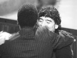 y Maradona, luego de que Ferlaino se abrazó el lunes con Diego