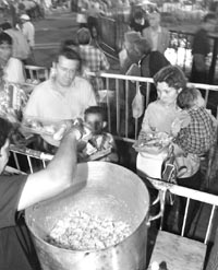 Como parte de los festejos navideños, el jefe de Gobierno porteño, Aníbal Ibarra, almorzó el domingo en el comedor “Raíces”, en Villa Lugano. Allí, el Gobierno de la Ciudad da de comer a diario a 120 chicos que viven en la Villa 20. Luego del almuerzo, Ibarra recorrió las instalaciones del lugar, repartió juguetes a los chicos y conversó con los vecinos. Para abarcar más, Ibarra y la vicejefa de Gobierno, Cecilia Felgueras, se repartieron. Felgueras primero acompañó a Ibarra (foto) y luego pasó por el comedor “Los Carasucias”, que dirige Mónica Carranza. |