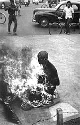 El sacrificio POR BEATRIZ SARLO Vietnam fue una colonia francesa hasta 1954. Ese año, los franceses abandonaron Indochina obligados por la derrota de Dien Bien Phu, la peor humillación europea en una ex colonia. El país quedó dividido en dos: en el sur, un gobierno pro-occidental, apoyado por Estados Unidos; en el norte, un régimen comunista encabezado por el héroe nacional Ho Chi Minh. Decenas de miles de vietnamitas emigraron de sur a norte y de norte a sur. El gobierno pro-occidental y católico del sur desató una persecución contra los budistas. Éste es el escenario político de la foto, que fue tomada en 1963. En esos años, probablemente importaba más el conflicto político entre sur y norte que el conflicto entre católicos y budistas. Este monje ardiendo era el símbolo de lo que provocaba el colonialismo, más que del sacrificio religioso. Aunque las persecuciones religiosas fueron denunciadas por todo el mundo, lo que definía la foto era la idea de imperialismo. Hoy podemos mirarla con otros ojos. Aquellos hechos se han reordenado y encuentran ecos en el presente. En primer lugar: las migraciones de pueblos campesinos que quedan atrapados en un conflicto político, que deben abandonar sus aldeas o son expulsados de ellas; esos pueblos a los que nuevos gobiernos les prohíben sus instituciones tradicionales y los integran a la fuerza o los expulsan: Vietnam del sur como premonición de lo que sucede en la ex Yugoeslavia, en Chechenia, en Afganistán. En segundo lugar, las persecuciones religiosas eran, en la década del 60, fundamentalmente un tema de la derecha. El monje budista entregado a las llamas le servía a la izquierda para repudiar a Estados Unidos, que apoyaba a sus perseguidores, pero no fortalecía la idea de libertad de creencias. El cuerpo inmolado no era leído como testimonio de la fuerza espiritual de una religión. En la diferencia de interpretaciones (una diferencia que puedo recordar en mi propia lectura de 1963 y ésta de 1999), el arte ha intercalado una imagen. Tarkovski, en el final de Nostalgia, muestra a un hombre impulsado por una revelación, prendiendo fuego a su cuerpo, casi grotescamente, mientras recita un mensaje que sólo es escuchado por algún mendigo y algún loco. Ese cuerpo del film de Tarkovski me permite entender hoy, de modo más intenso y menos unilateral, el cuerpo del monje budista, sobre el que el fuego dibuja un tatuaje mientras las llamas carcomen el triángulo perfecto de la posición en que ha elegido morir. Continúa |