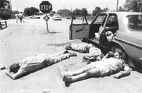 La amistad entre los miembros del Bang Bang Club empezó en los años 80. Greg Marinovich conoció a Kevin Carter, el más inestable de los cuatro, a través de su hermano, un periodista deportivo. Carter era jefe de fotografía (duraría poco en el puesto) del periódico anti-apartheid Weekly Mail. A principios de los 90, Marinovich y Carter empezaron a recorrer los barrios negros juntos. Carter era amigo íntimo de Ken Oosterbroek, jefe de fotografía de The Star, dos veces elegido Fotógrafo Sudafricano del Año, y el más arrogante y atractivo del grupo. Marinovich lo admiraba,y le gustaba trabajar con él. El club se completó cuando Joao Silva entró a trabajar en The Star, a instancias de Ooesterbroek. Había amistades individuales entre los cuatro, y a la vez un lazo común. Nuestras novias y esposas se hicieron amigas, y nos juntábamos siempre a cenar o discutir las fotos cuando uno de nosotros había logrado algo bueno, escribe Marinovich. Cuando había mucha violencia, formábamos una patrulla de madrugada: nos levantábamos antes de las primeras luces para recorrer juntos los barrios, cosa de no estar tan desamparados si sonaba la alarma. El amanecer era la transición entre el caos de la noche y el supuesto orden del día, el momento en que la policía se llevaba los cadáveres. A veces, cuando escuchaba el despertador, buscaba cualquier excusa para quedarme en la cama. Pero saber que los otros me estaban esperando en alguna parte terminaba obligándome a levantarme. El amanecer también era la hora en que los trabajadores subían a los trenes: el momento en que había más gente en las calles, y el momento más propicio para la violencia. Para 1994 el Bang Bang Club ya era un grupo absolutamente unido: Les habíamos cerrado la puerta a todos los fotógrafos que se nos querían unir. Sí; éramos arrogantes, elitistas y muy competitivos. Era un poco ridículo, pero la verdad es que habíamos pasado años aprendiendo cómo conseguir buenas fotos en circunstancias tan difíciles, y no queríamos ayudar a ningún advenedizo, fuera local o extranjero, que pretendiera hacer lo suyo en un par de semanas y después irse. El Bang Bang Club fotografió casi todo, incluso la agonía de uno de sus integrantes, cuando Ken Oosterbroek fue asesinado por una bala perdida en Thokoza, en 1994. Pero nunca pudieron documentar el accionar de la tercera fuerza: los parapolicías y paramilitares blancos que asesinaban en los barrios negros. Estaba claro que esto sucedía: las denuncias se multiplicaban, así como las historias de hombres blancos con el rostro y la piel de los brazos pintados de negro para camuflarse. Pero el Bang Bang Club no logró una sola foto que documentara el terrorismo de estado. Las responsabilidades de la policía blanca se conocerían mucho después, en el Informe de la Comisión por la Verdad y la Reconciliación, durante el gobierno de Mandela. El buitre y la niña Kevin Carter había nacido en una familia cristiana de clase media. En casa no éramos racistas, sino supuestos liberales. Fui criado para amar a mis semejantes, pero ahora cuestiono a la generación de mis padres por no haber hecho nada contra el apartheid. Cuando terminó la secundaria, Carter entró en el ejército. Pronto se dio cuenta que había sido un error: en 1980, trató de defender a un mozo negro que sus compañeros soldados insultaban. Lo golpearon tanto que terminó en un hospital. Cuando lo dieron de alta desertó e intentó empezar otra vida como disc-jockey en Durban, con nombre falso. Cuando descubrieron su verdadera identidad, intentó suicidarse por primera vez, con veneno para ratas. No lo consiguió, y aceptó terminar el servicio militar, con las penalizaciones correspondientes, para evitar más problemas. Cuando estuvo libre, empezó a trabajar como fotógrafo. A esa altura, ya era adicto a la Pipa Blanca: una combinación de Mandrax (de venta ilegal en Sudáfrica) y dagga (marihuana), que se fuma usando el pico de una botella rota. En 1993, cuando trabajaba para el Weekly Mail, Carter sintió que su carrera como fotógrafo estaba en un punto muerto, y decidió financiarse él mismo un viaje a Sudán. Lo acompañó su amigo Joao Silva. Querían trabajar en lo que los voluntarios llamaban El Triángulo de la Hambruna, en el sur de Sudán, donde el gobierno islámico estaba en guerra con las tribus Nuer y Dinka. Llegaron en un avión de las Naciones Unidas cargado de comida. Los pobladores hambrientos rodearon el avión, salvo aquellos demasiado débiles para caminar, que esperaban sentados alrededor de un improvisado comedor. Los dos vieron fotos por todas partes, así que se separaron por el campamento. Un rato después, Carter se acercó a Silva,excitado, restregándose los ojos, pero no llorando, y le dijo: Le estaba sacando fotos a una nena arrodillada, que apoyaba la cabeza contra el suelo, y de repente un buitre gigante se posó detrás de ella. Seguí disparando, y recién después espanté al buitre. Cuando trató de mostrarle el lugar, no se veía el buitre por ninguna parte, pero la nena seguía ahí, vencida por el hambre. Ninguno de los dos la ayudó a llegar al comedor, que estaba apenas a cien metros, cuenta Silva en el libro.
