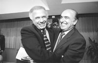 Justicialista, Carlos Menem, y los gobernadores de Santa Fe, Carlos Reutemann,