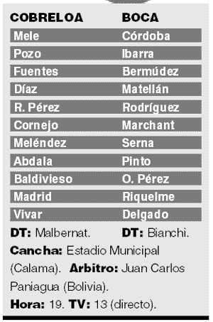 metros). El equipo conducido por Carlos Bianchi visitará al Cobreloa